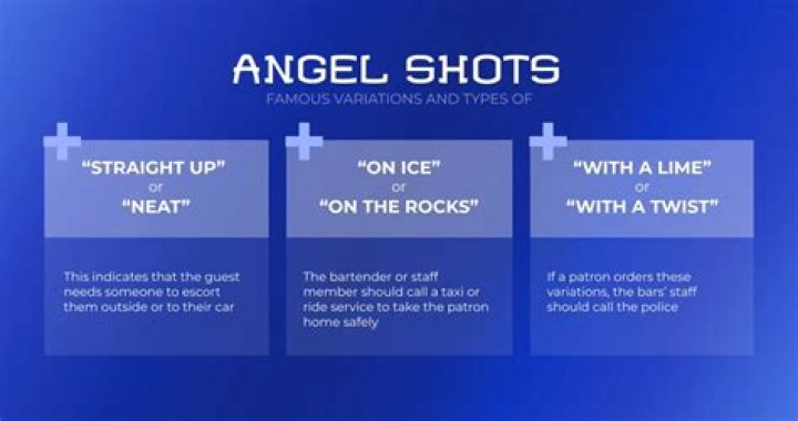- A woman at a bar in New York ordered an angel shot on the rocks after feeling uncomfortable with a patron. The bartender immediately called her a taxi and ensured she got home safely.