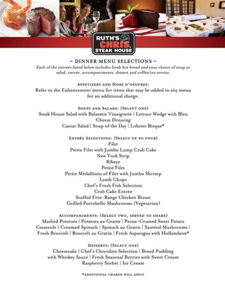 Overview of the Ruth Chris Menu