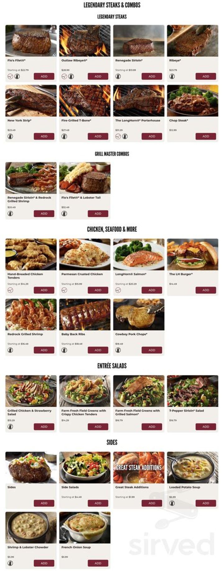 - Steaks: The star of the menu, featuring cuts like Ribeye, New York Strip, and the signature Longhorn Steak.