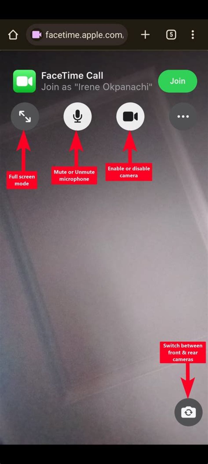 2. They will be prompted to enter their name to join the FaceTime call.