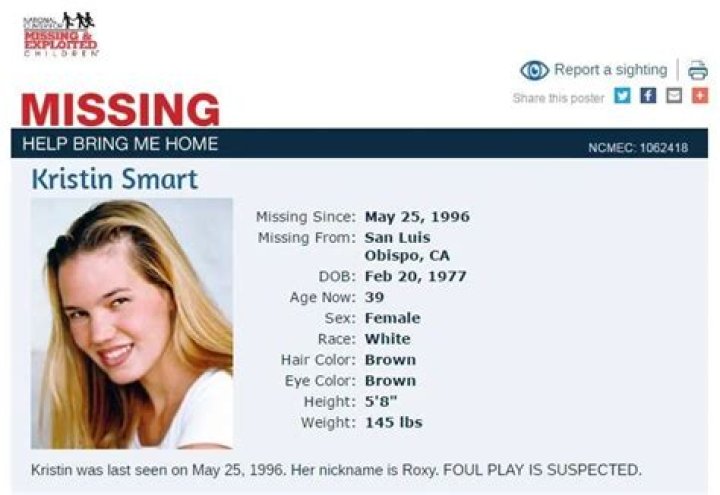 Kristin Smart disappeared from the campus of California Polytechnic State University, San Luis Obispo, on May 25, 1996. Despite extensive investigations, her whereabouts remain unknown, and the case remains unsolved.