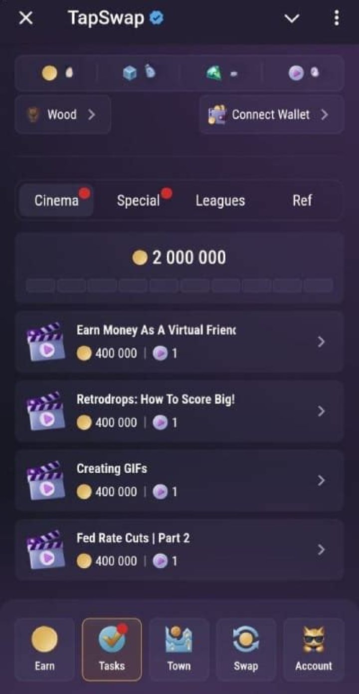 - Connect your wallet to the Tapswap platform.