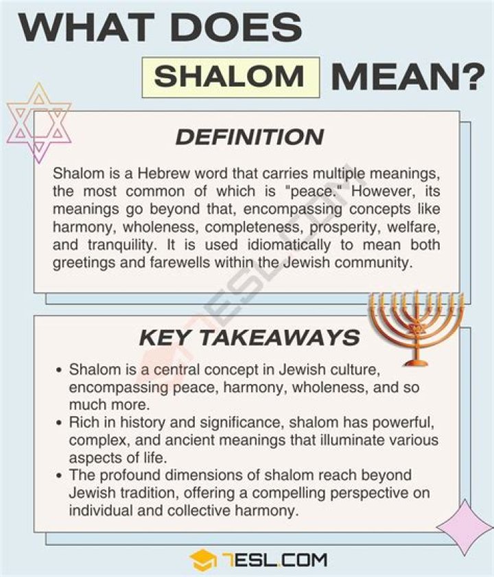 Shalom meaning is a term that resonates deeply within various cultures and communities, particularly in Jewish tradition. It encompasses more than just a greeting; it embodies a profound concept of peace, harmony, and wholeness. This article explores the etymology, meanings, cultural significance, and practical applications of "shalom" in everyday life, aiming to provide readers with a comprehensive understanding of this rich term.