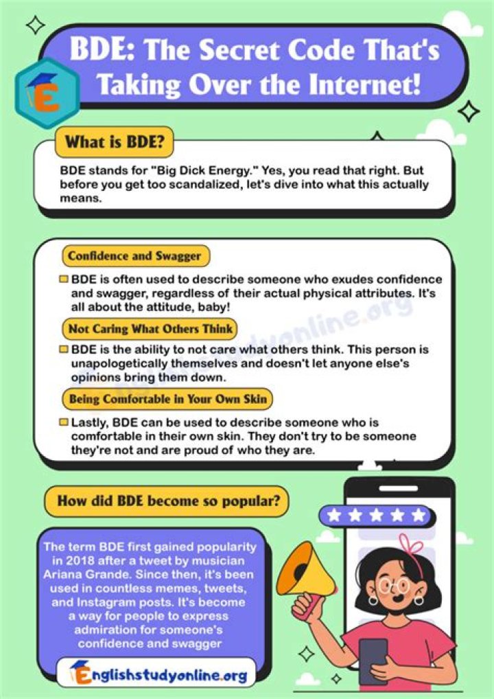 In recent years, the term "BDE" has gained immense popularity, especially among millennials and Gen Z. BDE stands for "Big Dick Energy," a slang term that describes a certain aura of confidence and charisma often associated with individuals who exude self-assuredness and dominance, regardless of their physical attributes. As the term has made its way into popular culture, understanding its implications becomes increasingly important.